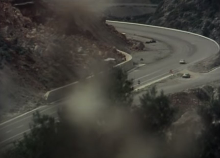He then drives back to Annika’s house to see her, where an already-envious Matheos notices her excitement at his return. This shot looks to have been taken from the house, and shows the same bend where the Opel was parked on Haldane’s previous visit.