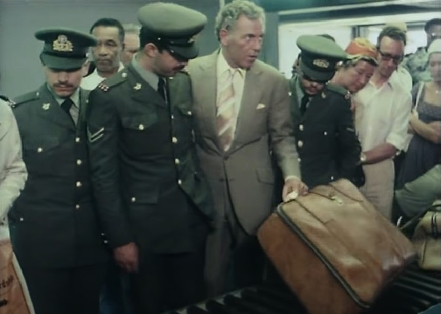 Haldane goes inside and collects his luggage. It’s not possible to get a view of the interior of the airport from back in ’77 unfortunately.