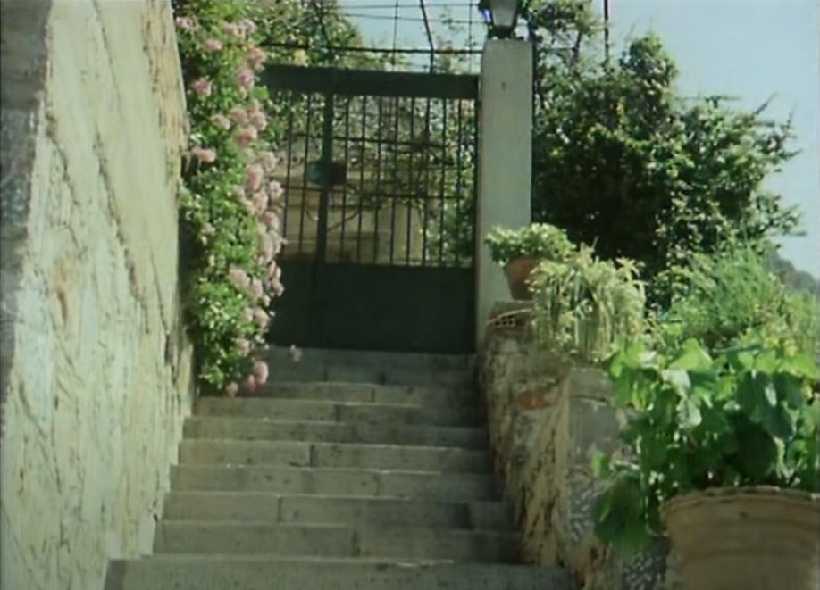 On exiting the taverna, we see the space next to it is empty, and the foundations are there for other buildings along the seafront. The stairs beside the taverna will feature very often in the serial.
