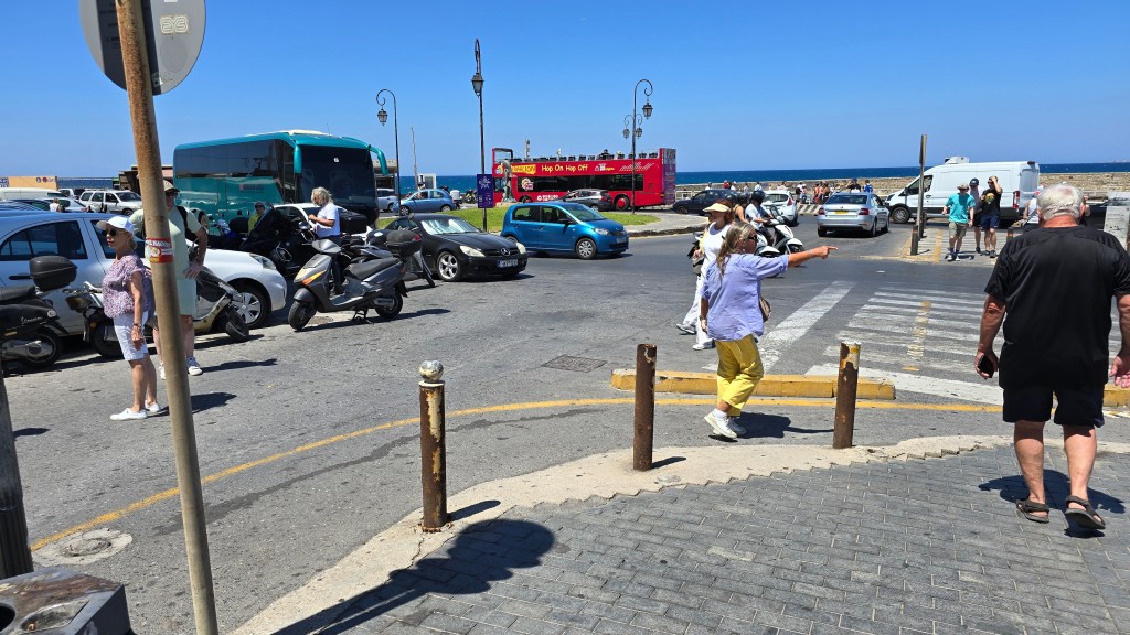 Location: 25th August Street at intersection with Epimenidou Street, facing southbound, Heraklion, Crete
