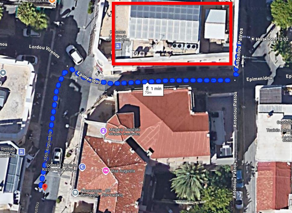 The walk from Babis’ office to the rent-a-car office is a 1 minute walk.