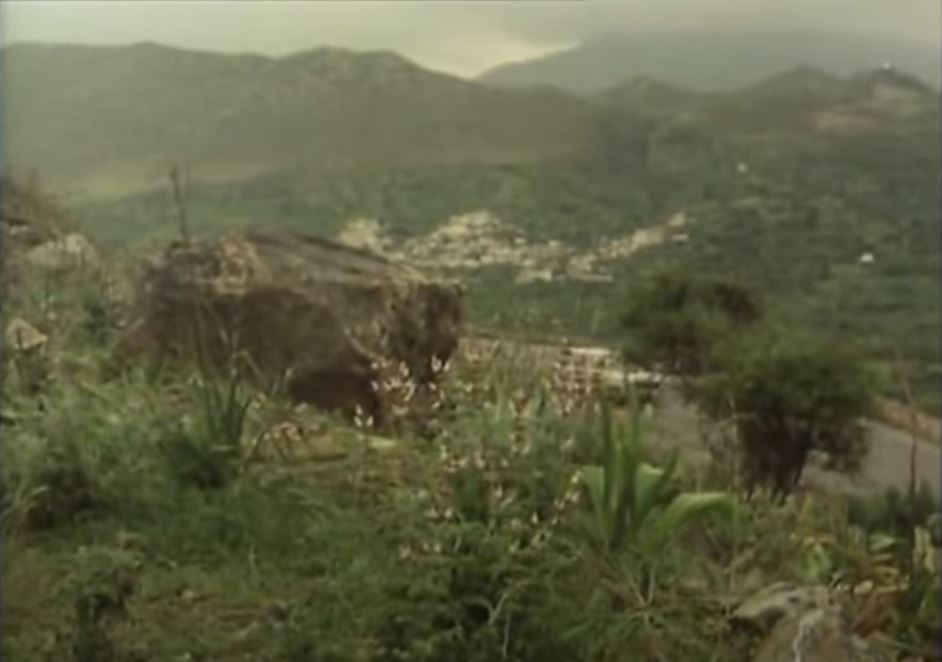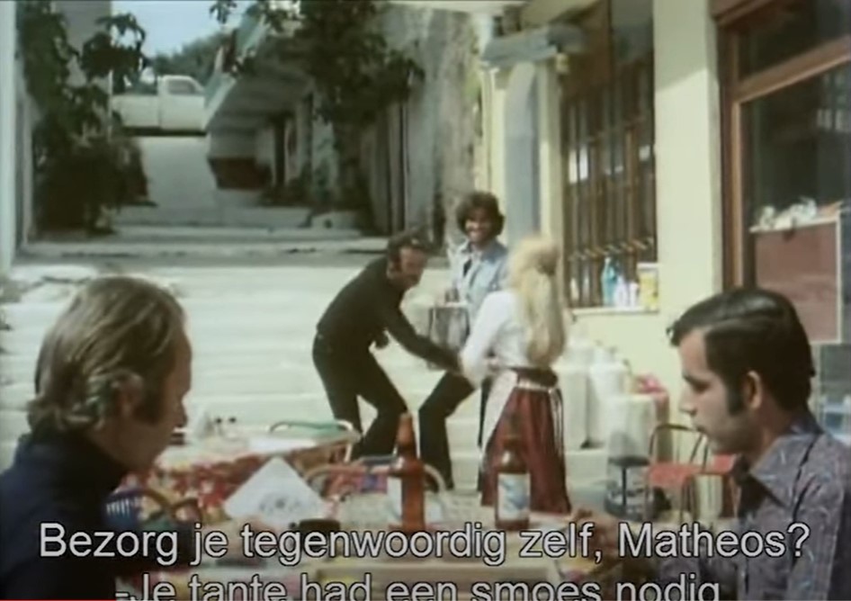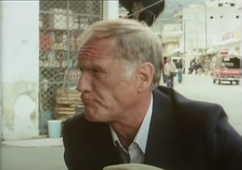 The main road that runs through Malia, the old Heraklion to Agios Nikolaos road, has a location that fits the attributes of the photos above. I drove to Malia in August 2024 and went to speak to the young lady that was working in the shop (previously the cafe that the gentlemen are sat outside) that I had found using Google Street View. It turns out that this location is indeed correct; after I played the scene on my phone, the lady proudly exclaimed that the old man (in the 3rd screenshot above) was her great grandfather, and this was her grandmother’s shop.