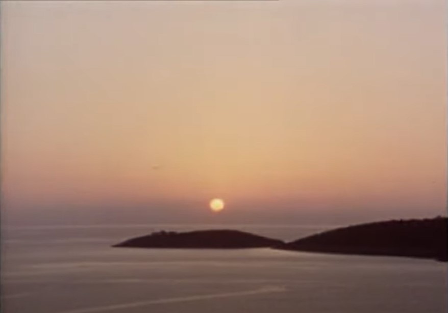 The next shot is of a sunset, which was also used in episode 1. Looking around Elounda Bay, you’d think this was Spinalonga with Kalydon next to it, but the shape is wrong. If we consider that the cast and crew were staying in Agios Nikolaos, then we can also look there, as that area may have been used for inserts or other locations. With this in mind, you will see the location below just off the eastern edge of Ayios Nikolaos.
