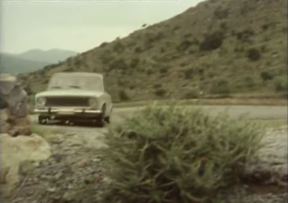 Whilst Haldane is jotting down notes, we see the FIAT that Hebden is travelling in pass behind him on his way into Elounda.