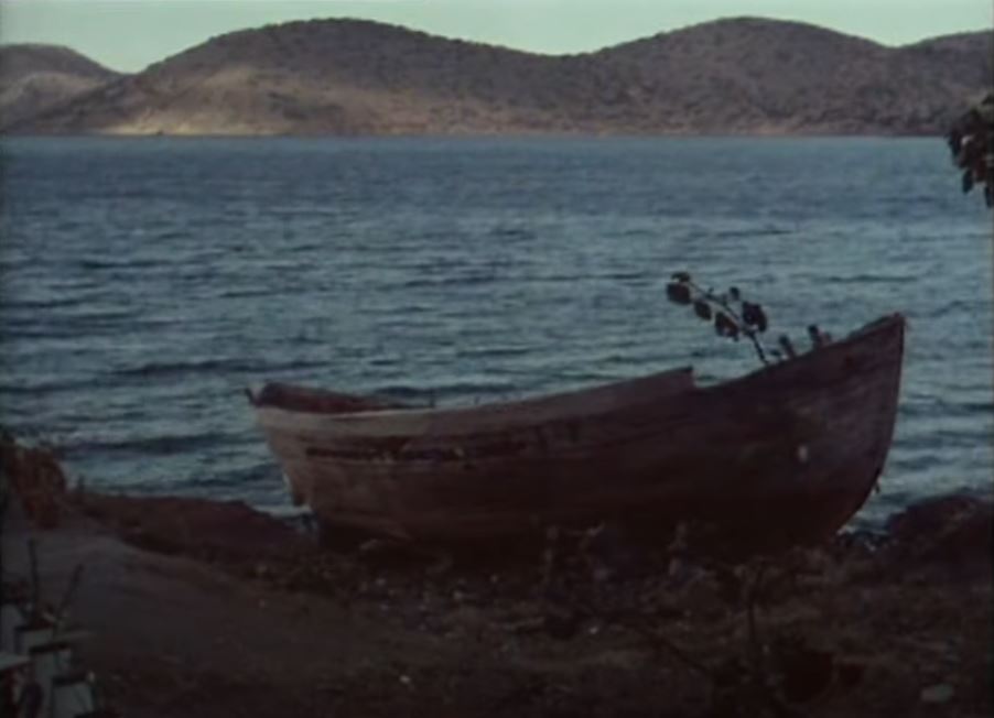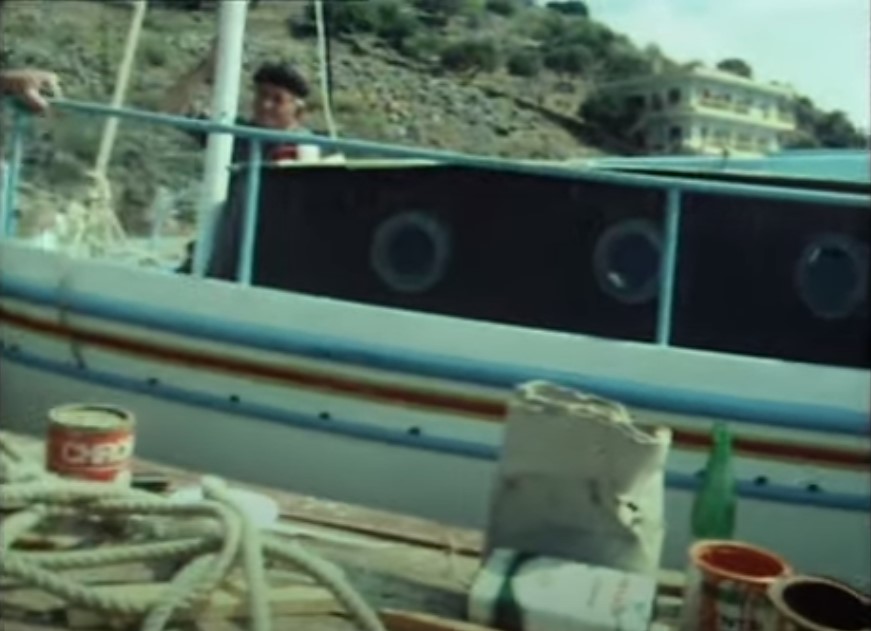 The next morning, Haldane is working on his boat. Again, this is up near the Despina Taverna.