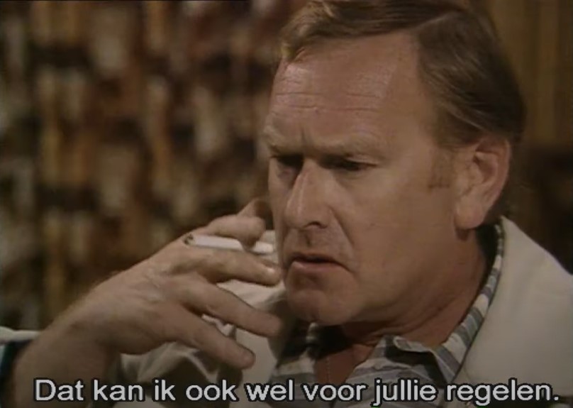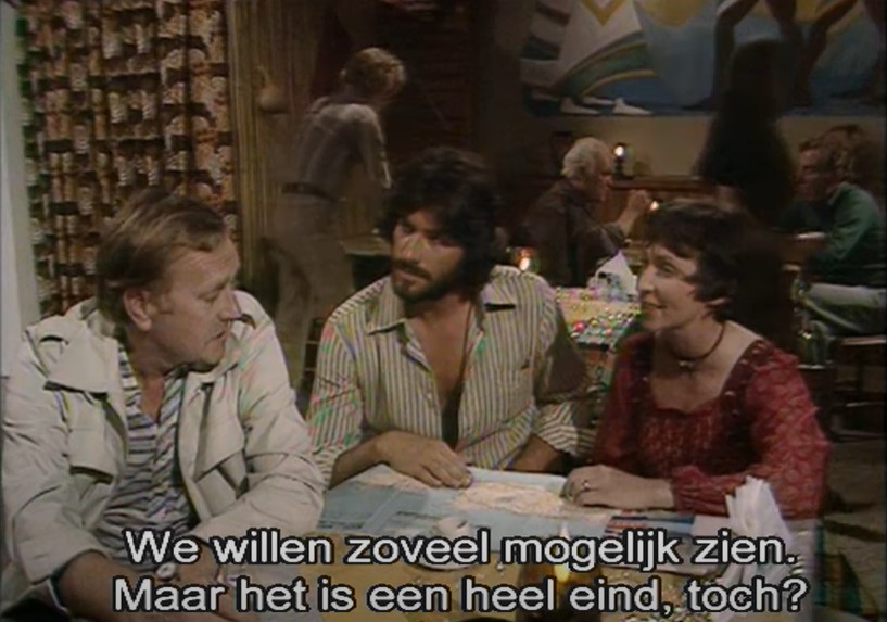 That evening, he discusses the situation between Sam, Kingsley and Spiros with Annika. This follows a shot of the boat next to the taverna, with the camera then panning up to Haldane’s apartment.
