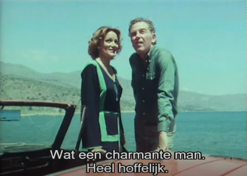 After sitting down to rest, they drive back to Elounda. Katerina Matakis sees her daughter pass by in Haldane’s car.