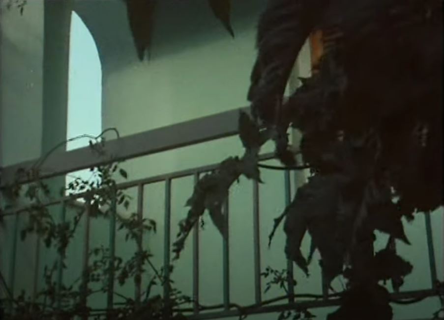 In the following shot, Haldane and Major Krasakis are stood on the balcony of the terminal building facing the runway. From the height of the shot, it looks as though they’re on the upper floor. You can see the fencing beside the apron far in front of and below them.