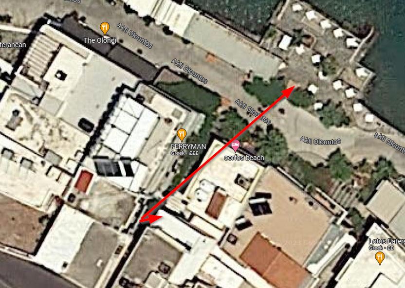 Incidentally, at the bottom of the sign is the word ΚΑΡΔΙΟΛΟΓΟΣ, which is the Greek word for Cardiologist. This house is around the corner from the public gardens in Neapoli. Unfortunately, as you can see, the front wall has crumbled away now, but if you look at the railings on Street View, you will notice that they match the gates in the screenshot above.