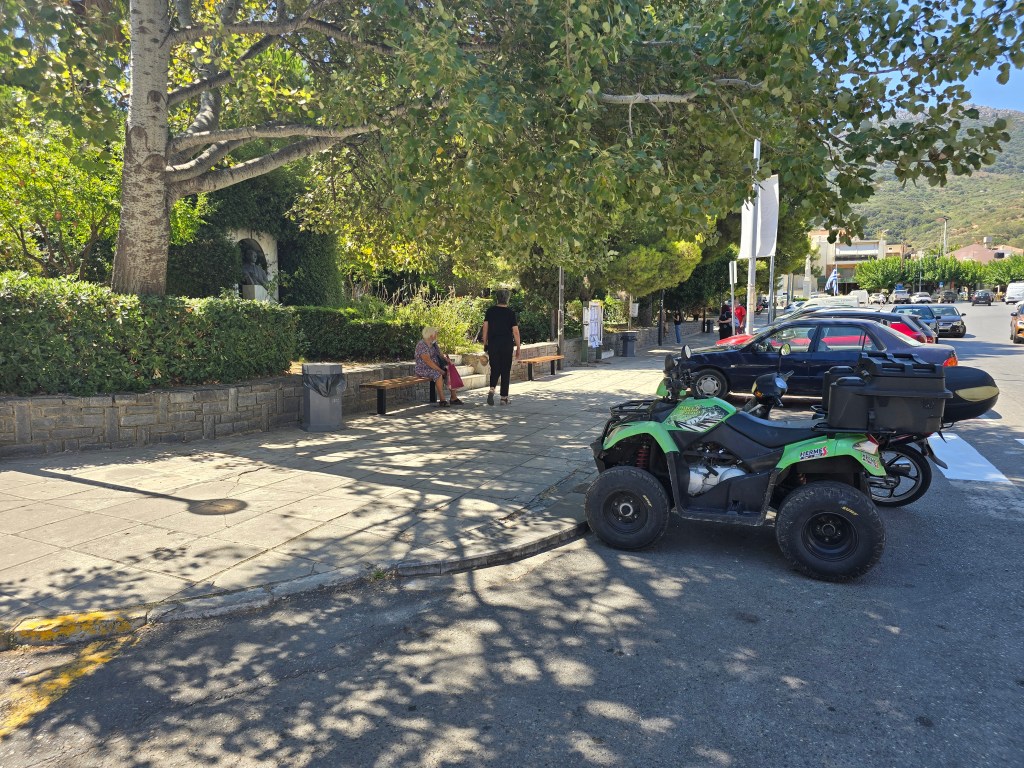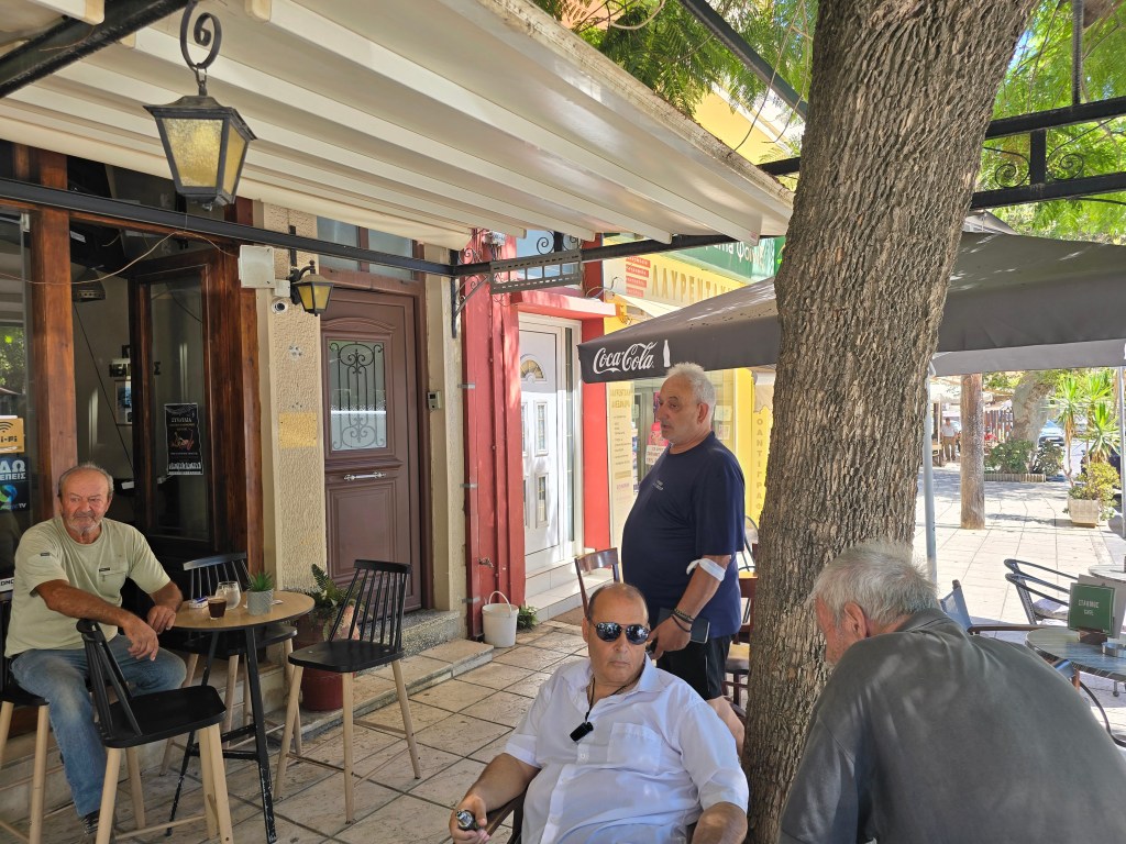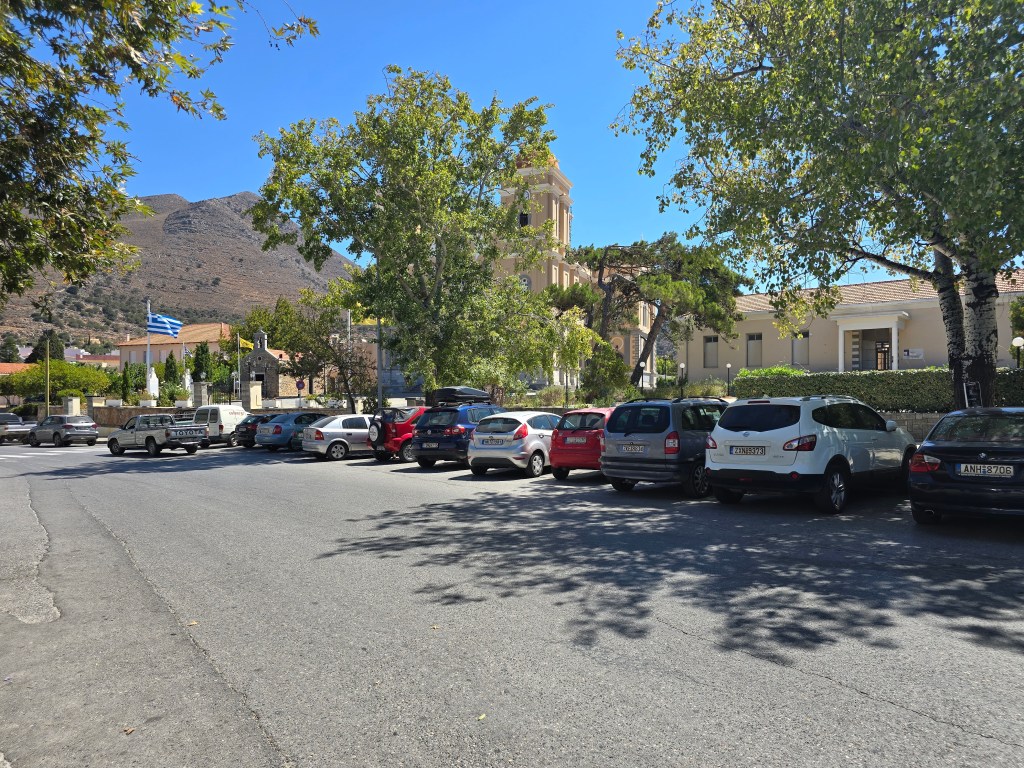 Google Street View doesn’t cover most roads in Neapolis so it’s difficult to find the following location. But from the background in the following shots, and with confirmation from locals, it looks like the Public Gardens (in the town square next to the church) in Neapoli.